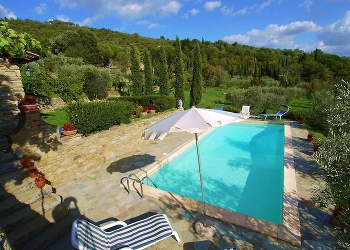 Villa Eugenio는 코르토나에서 15명을 위한 좋은 숙박 시설을 제공합니다. 빌라에서는 6개의 침실과 위성 TV, 실내 온도 조절기, 돌 벽난로가 제공됩니다.